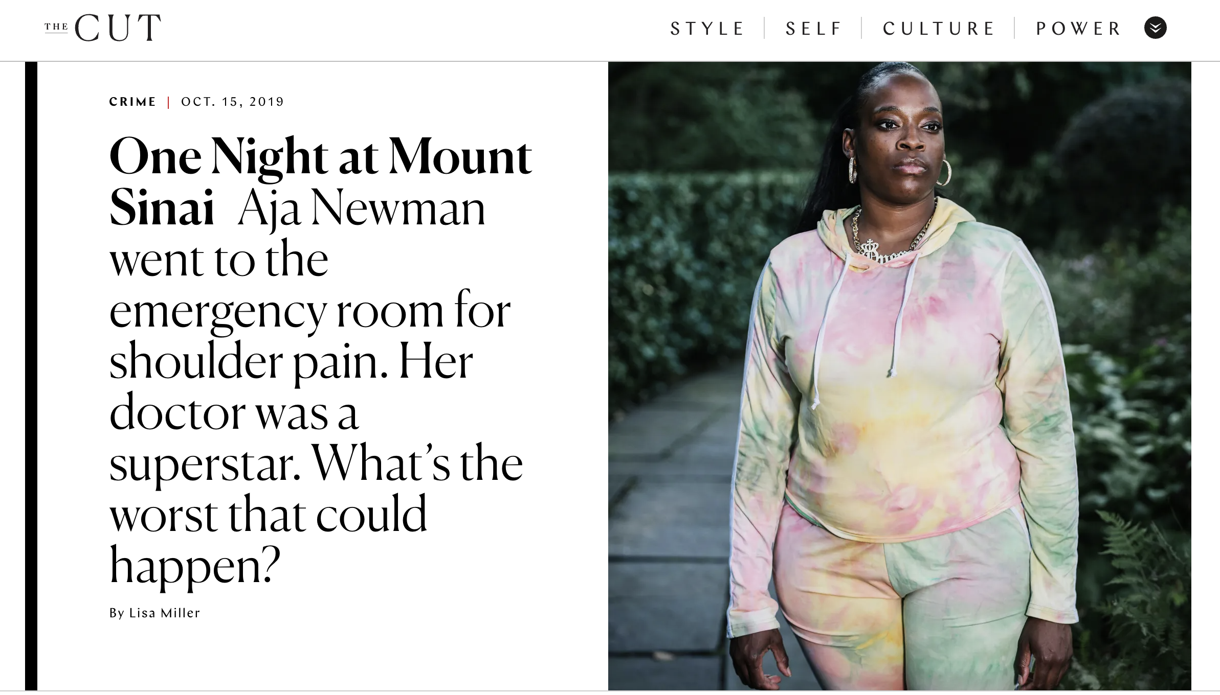 One Night at Mount Sinai Aja Newman went to the emergency room for shoulder pain. Her doctor was a superstar. What’s the worst that could happen? - New York Magazine